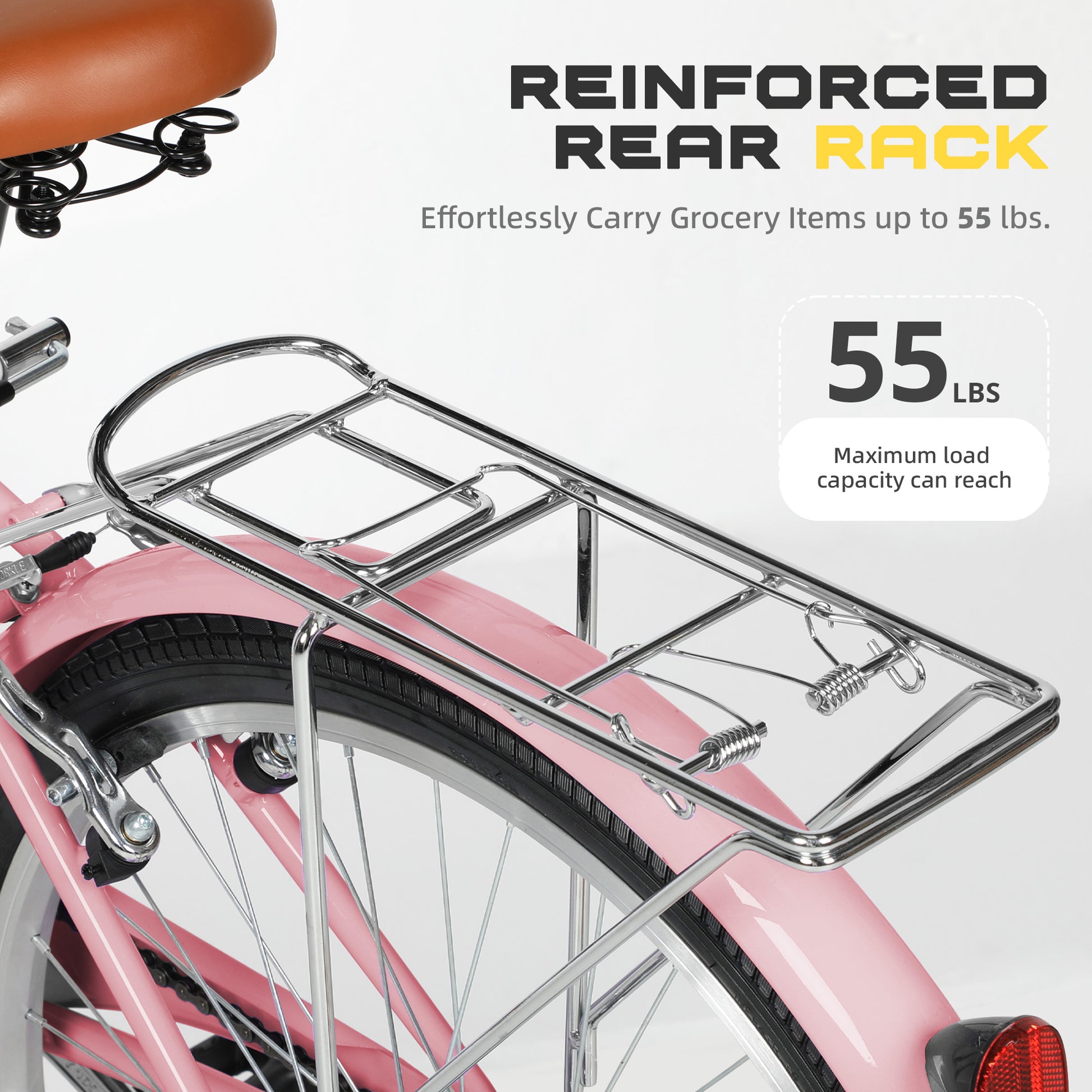 24/26 Inch Beach Cruiser Bike for Adult - High-Carbon Steel Frame Comfortable City Bike with Rear Rack or Basket