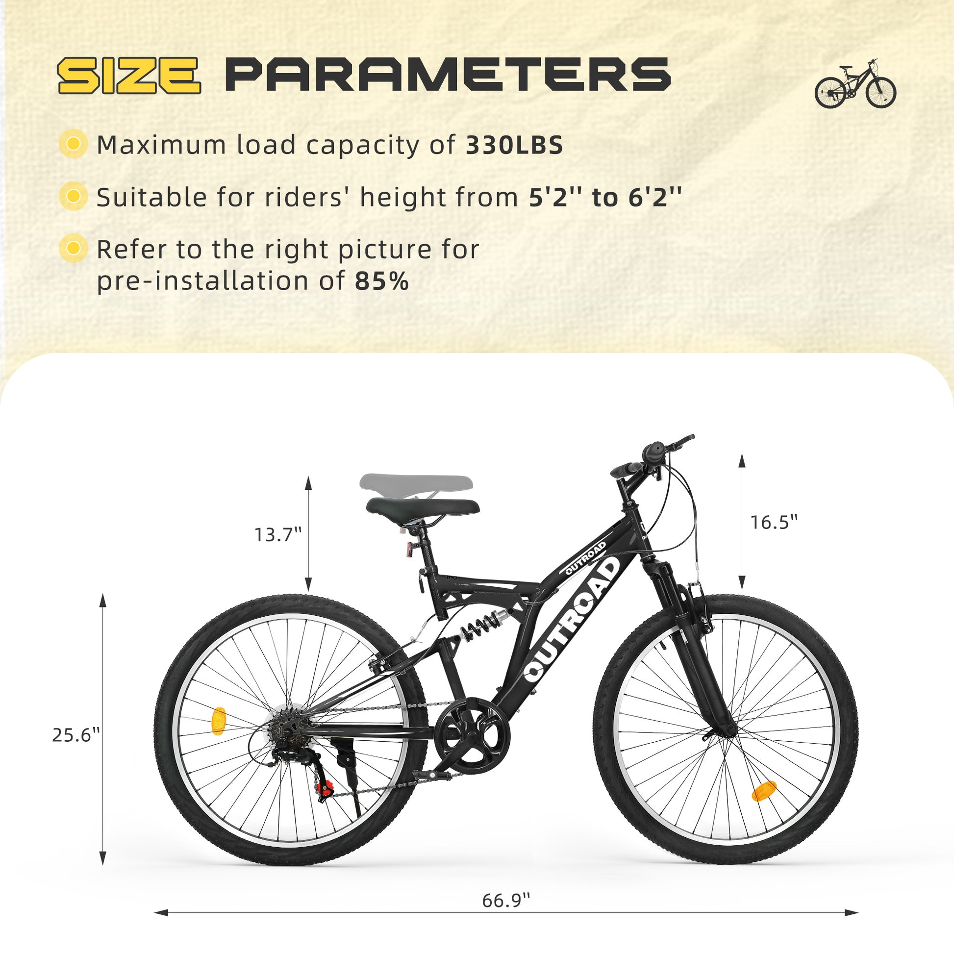 Outroad 26 Inch Mountain Bike, 7-Speed High-Carbon Steel/Aviation Grade Frame with V Brake, Adjustable Ergonomic Seat for Adults